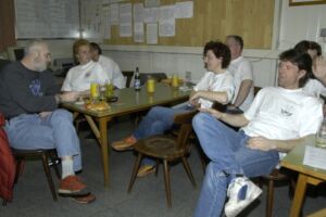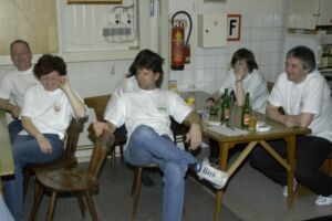 In einer kurzen Spielpause sind nach und nach alle Vertreter des starken Geschlechts verschwunden. Die Mädels – ganz in kommunikative Tätigkeiten vertieft – haben das noch nicht mal gleich bemerkt. Agnete nach einiger Zeit: „Wo sind denn die alle hin? Die haben sicher was vor!“ „Ich kenne doch unsere Männer!“