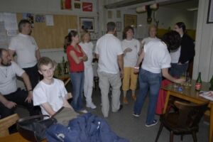 Mit der süßen Stärkung ging es dann ans schon legendäre Zapfenschießen, Weiberl gegen Manderl, die Teufelinnen hatten die Nase vorn. Naja. Was wir unbedingt auch weiter machen sollten, ist das spielen auf 10 Schübe, da wird der Ehrgeiz a bisserl mehr angespornt. Ein zweiter Blick auf die Uhr, lange nach Mitternacht, Zeit zum nach Hause gehen.