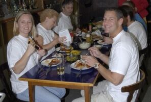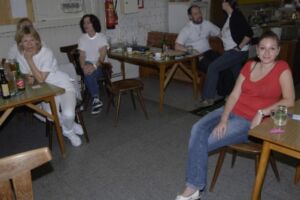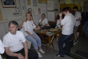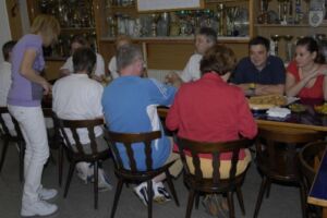 Sehr rasch fanden sich diesmal alle Kegelfreunde ein, so konnten wir halbwegs pünktlich die schon mit mächtig Kohldampf erwartete Stelze genießen, und es war ein Genuss, sehr viel besser ist’s im Schweizer Haus auch nicht. Mit den obligatorischen Beilagen- Krautsalat, Essiggurkerl, Senf und Kren, der auch die verstopfteste Nase frei macht, zum löschen ein leckeres Bierchen, mancher halt Apfelsaft(brrrrrr)haben wir es uns erstmal so richtig gut gehen lassen. Claus und Bettina haben einen Schokoladenkuchen mitgebracht, von Angelika gab’s leckeren erfrischenden Zitronenkuchen. Darüber sind wir aber erst ein wenig später hergefallen, es is‘ einfach nix mehr reingegangen. Ok, eventuell schon, aber beim ersten Wurf wär’s wahrscheinlich wieder raus…egal….So zahlreich wie an diesem Abend waren wir noch nie, und ganz besonders hat uns gefreut, dass auch ganz liebe Leute der Stiege I dabei waren, Ainoha und Christian, ich hoffe, ihr habt euch gut unterhalten und seid auch das nächste Mal wieder mit von der Partie! Und, Christine, das nächste Mal würde ich Dich auch gerne wieder mit dabei haben, der Mike war gaaaaanz traurig…hm… 😉 Auch diesmal war wieder Luca, unser jüngster der Sellingergasse, mit, und, hat dieser Lauser doch tatsächlich schon ein Kegel-Leiberl. Steht ihm gut. Aber net lang, wenn der Kerl weiter so Gas gibt…