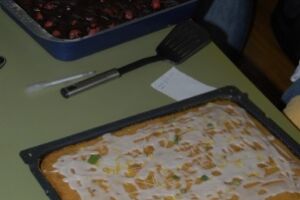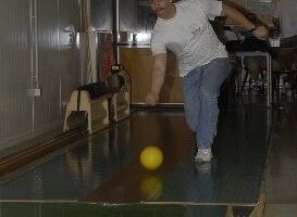 So wurde wieder kräftig gekegelt, diesmal hat die Bahn nich w.o. gegeben, soll heißen, dass sich Peter entweder ein wenig zusammengerissen hat beim werfen (wos i auba net glaub) oder die haben die Bahn einfach Peter-sicher gemacht. Ein Blick auf die Uhr- schon halb Elf, die Zeit vergeht so schnell…spricht für Kurzweile..also wurde mal ein kleines Kaffeepäuschen eingelegt, nun kamen auch die leckeren Kuchen zum Zug. Es war ein kleiner Kampf von mächtig deftigen Schokokuchen gegen locker leichten Zitronenkuchen..nach drei Runden habe ich aufgegeben… ;-).