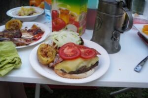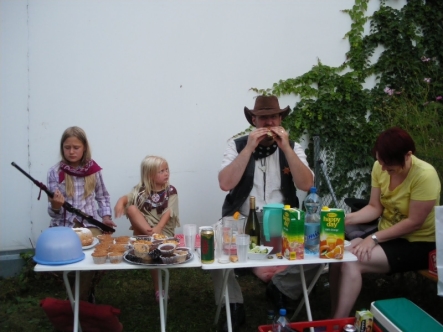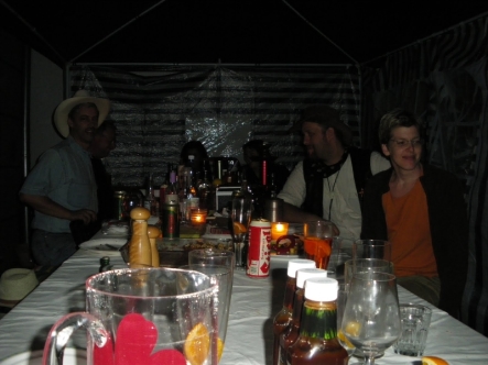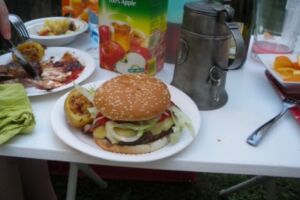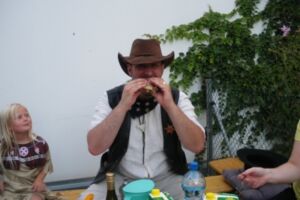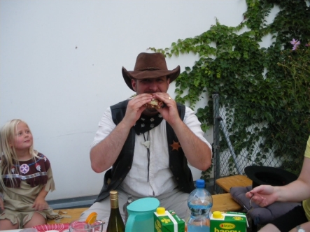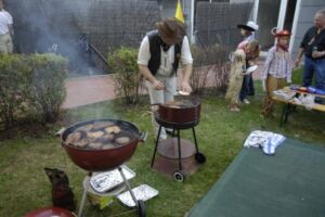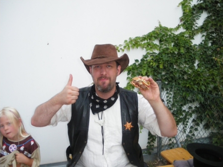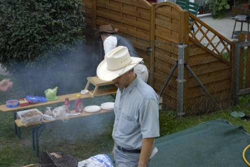 Barbecue-Fred versorgte uns mit einer fantastischen Western-Küche, unter anderem Würstchen, Spareribs, Steaks und Maiskolben, unterstützt wurde er von Arizona-Bob, dessen sagenhafte Burger diesmal eine wahre Hochsaison feierten.