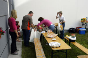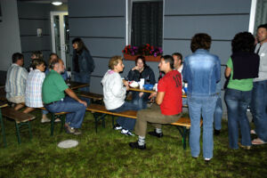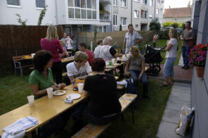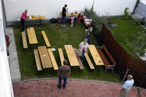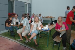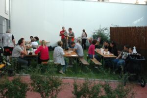 Bis auf wenige Bewohner, die durch Urlaub oder sonstige Gründe verhindert waren (die nächste Party wird sich hoffentlich keiner entgehen lassen 😉 ), haben alle ihre Teilnahme zugesagt. Wer etwas zu Essen und zu Trinken mitbringt, war auch bald geklärt. Sogar Tische und Bänke wurden organisiert.