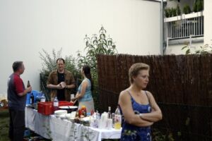 Es war leider wieder ein wenig zu viel, aber wir nähern uns schon der richtigen Menge. Wir haben ja noch viele Gelegenheiten zum Üben ;-). Das Wetter passte, die Stimmung war ausgezeichnet: Mario hat eine spezielle MP3-Musikmischung erstellt, und sogar in den Genuss einer Wasserpfeife kamen wir diesmal. Es war so gemütlich, dass die letzten erst um 3:50 Uhr nach Hause gingen (außerdem war dann das Bier aus…).