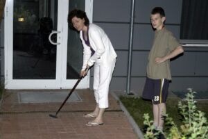 Wie schon erwähnt war diesmal Grillen angesagt. Die Grillkohle zierte sich anfangs ein wenig. Aber unter tatkräftiger (Fächer-)Mithilfe des Superkarpata-Hattrick-Siegers Mike wurde eine Glut entfacht, die erst gegen 2 Uhr erlöschen sollte. Der geliehene Grill war jedenfalls groß genug, um alle gleichzeitig zu versorgen.